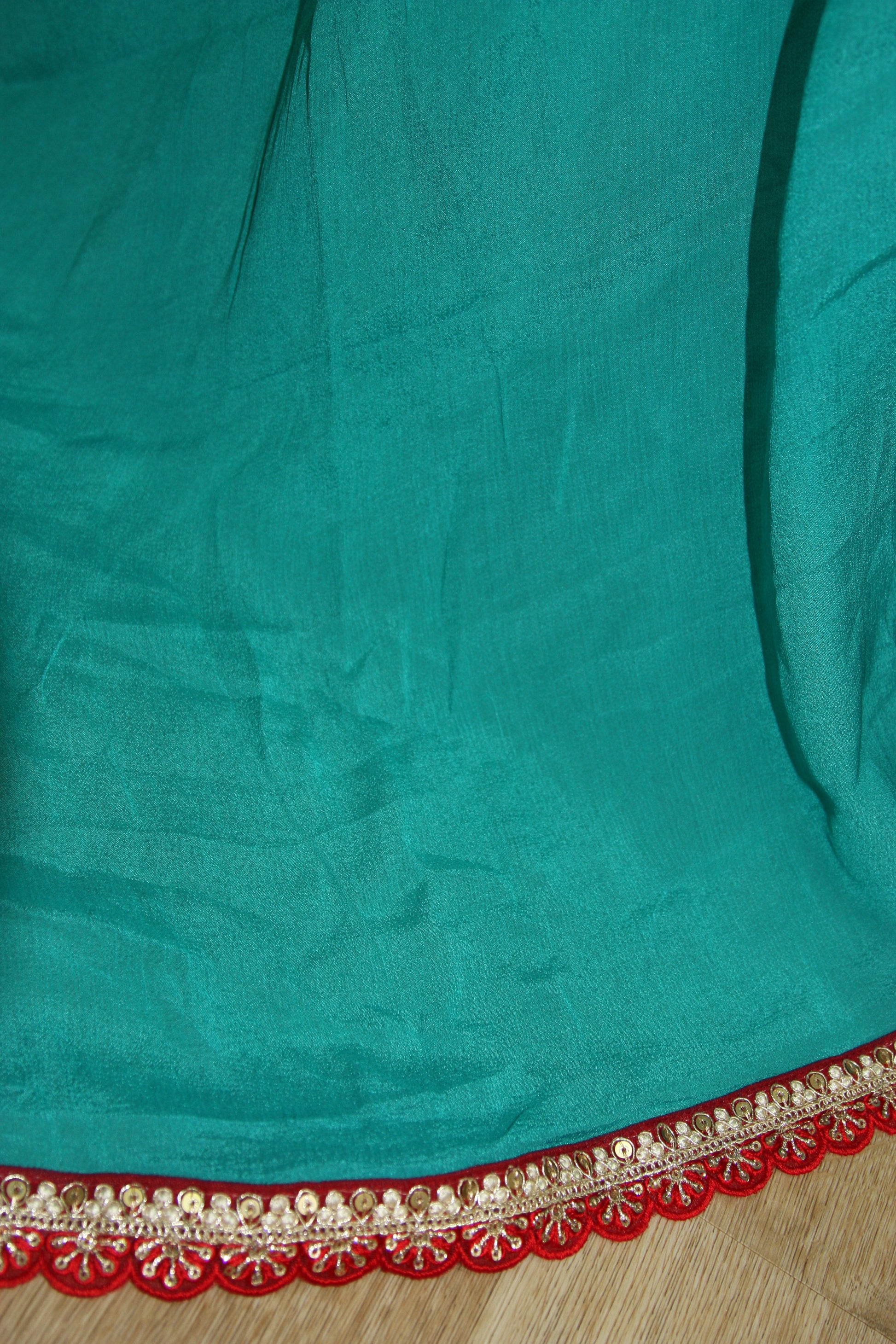 Elegant Turquoise Dupatta with Red and Gold Embellished Border