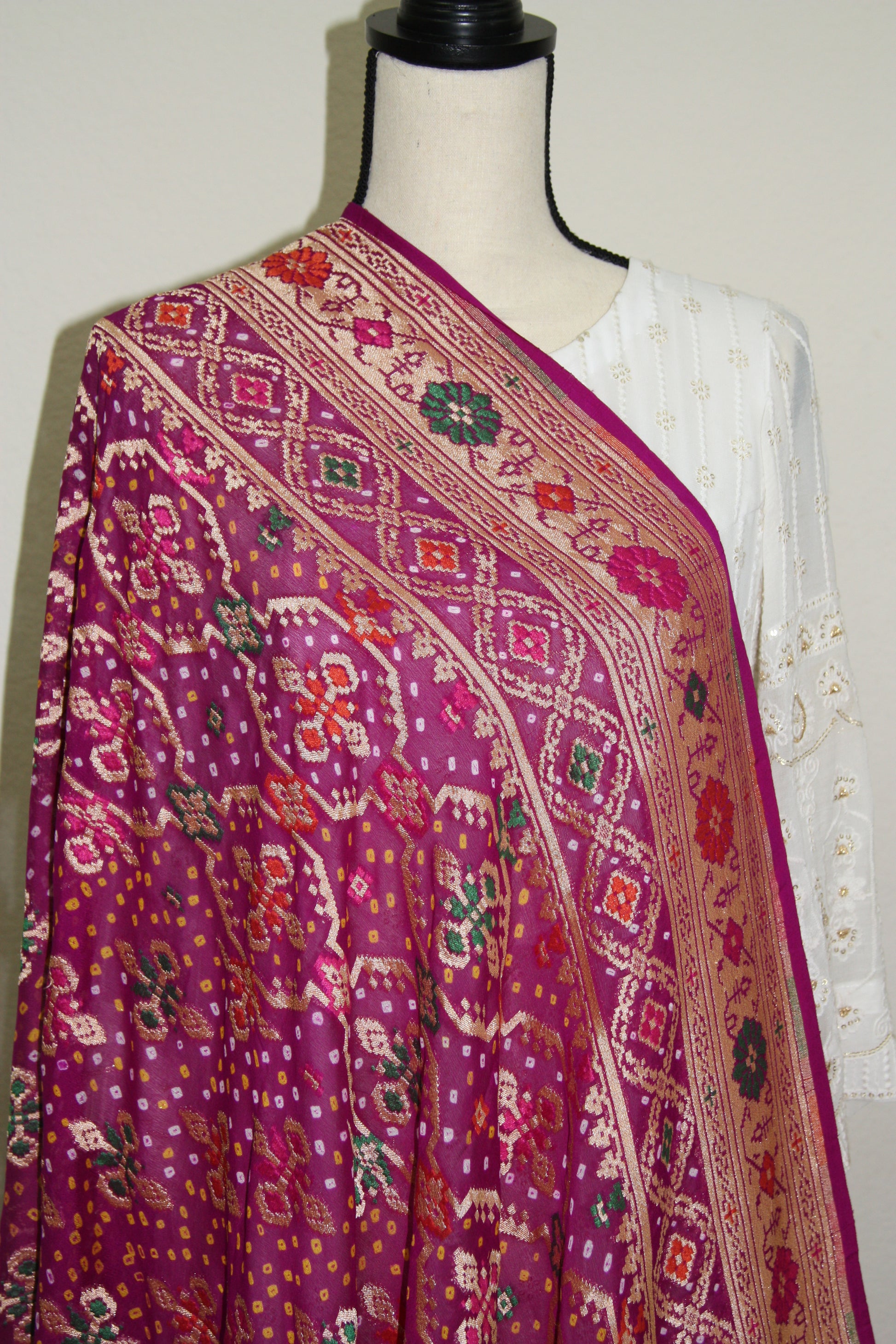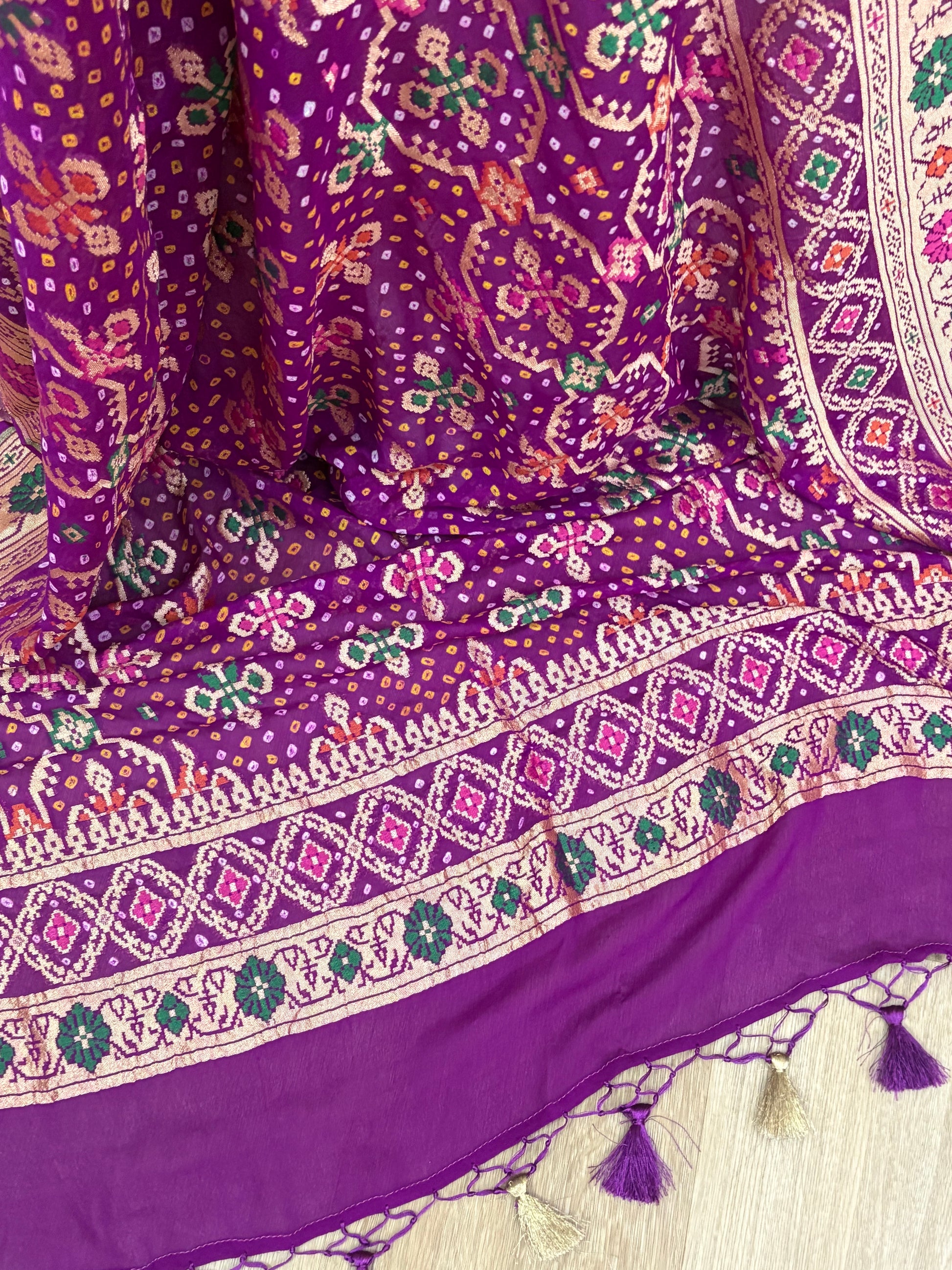 Purple Banarasi Georgette Bandhani Dupatta with Meenakari Work